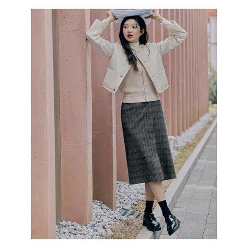 [빈폴레이디스]H라인 체크 스커트 그레이 (BF4927C134)
