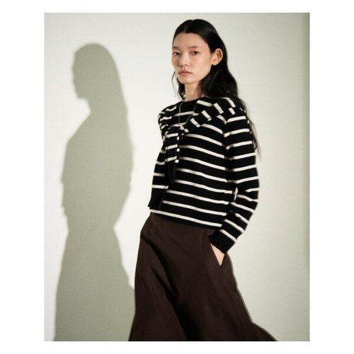 [빈폴레이디스]라운드넥 숄 변형 스트라이프 풀오버 블랙 (BF4X51C025)