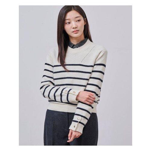 [빈폴레이디스]스트라이프 라운드넥 풀오버 아이보리 (BF4X51C070)