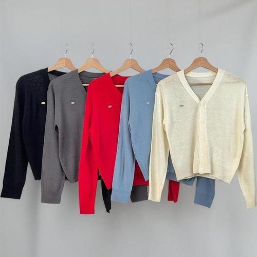 [다잇템_패션]여자 V넥 하트자수 빨간색니트 귀여운 가디건