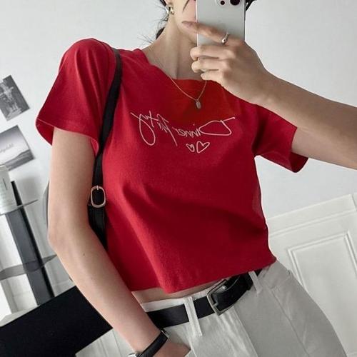 [다잇템][다잇템] 여자 하트자수티 반소매 코튼 필기체 빨간색 탱크 티셔츠_20196897_588872