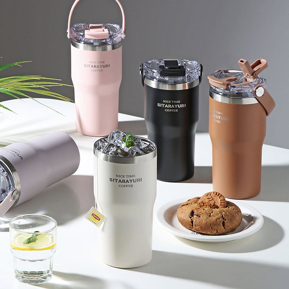 사각핸들 스텐304 텀블러 보온보냉 빨대 텀블러 보온병 콜드컵 2size