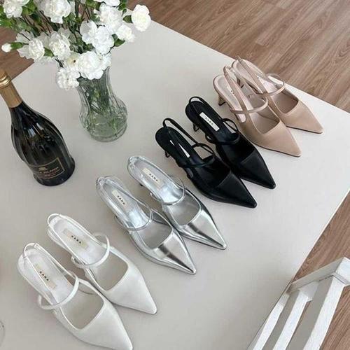 [셀러허브_여성트랜드패션]ONM 여자 데이트 룩 슬링백 뾰족 스틸레토 힐 구두
