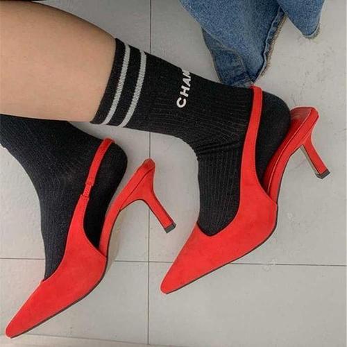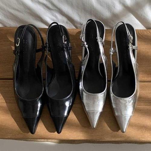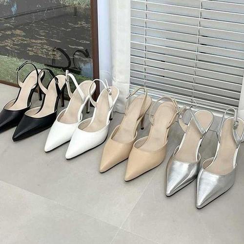 [에이치플러스몰]여성 슬링백 하이힐 스틸레토 심플 힐 뾰족 구두