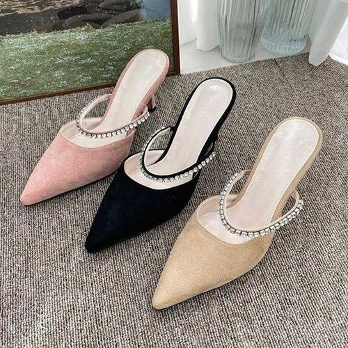 가을 코디 여자 하이힐 뾰족한 뮬구두 스웨이드 구두