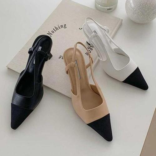 [셀러허브_여성트랜드패션]ONM 정장 샌들 슬링백 배색 스틸레토 뾰족 구두 힐