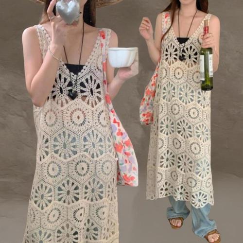 [옷자락]여성 시스루 망사 레이어드 롱 원피스