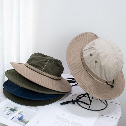 여름 남자 양동이 모자 야외 자외선 차단 와이드 브림 파나마 사파리 사냥 하이킹 모자 메쉬 어부 모자 비치 선 스크린 모자