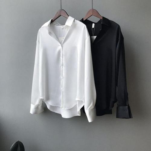TEMU 플러스 사이즈 - 여성용 캐주얼 긴팔 버튼업 셔츠 - 단색, 칼라, 버튼업 프론트, 루즈핏, 가벼운 폴리에스터, 가을에 완벽, 캐주얼 의상|칼라 버튼업|폴리에스터 원단