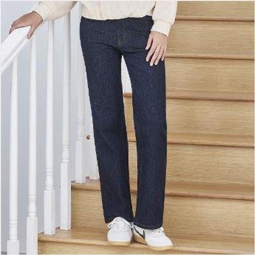 [하프클럽/이버유]여성 논페이드 기모바지 와이드 청바지 생지데님 진청데님 밴딩