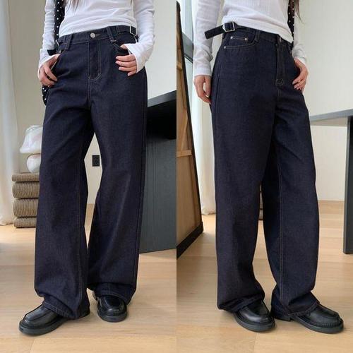 [신상오픈런]여성 캐주얼 논페이지 사이드버클 생지 와이드 청바지