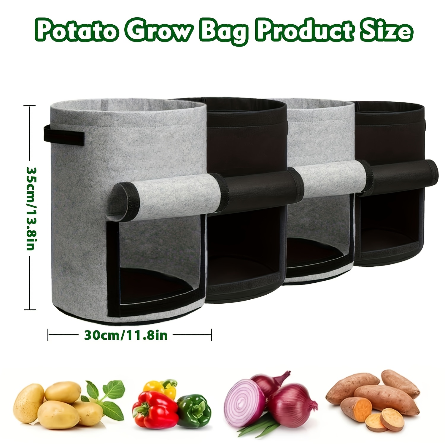 TEMU 스폰드와일드 2 4 6팩 감자 재배용 플랩 포함 화분 7갤런(약 25리터) 10갤런(약 35.7리터) 야외 식물용 손잡이 포함 감자 토마토 채소용 블랙 & 그레이 정원 액세서리 가드닝 용품