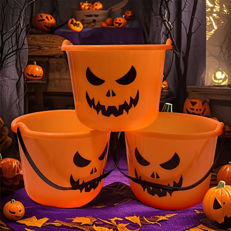 TEMU 3개 세트 할로윈 호박 트릭-트릿 버킷, 손잡이 있는 플라스틱 호박 바구니, 할로윈 파티 선물용, 악마 유쾌한 얼굴 디자인, 트릭-트릿 파티 장식