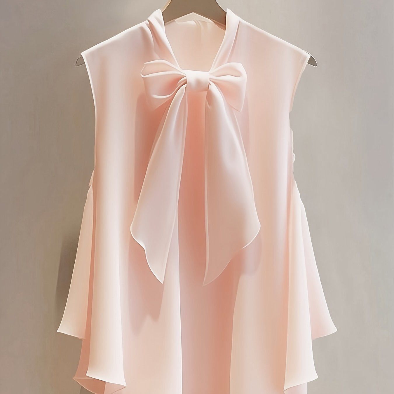 TEMU 여성용 민소매 타이 프론트 블라우스 - 가벼운 여름 상의, 리본 디테일, 단색, 레귤러 핏, 캐주얼 아웃팅에 완벽한 여성 셔츠, 스타일리시한 여성 블라우스|블라우스|여름블라우스|여성블라우스
