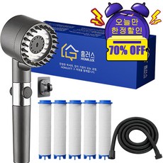 홈럭스 파워수압 필터 샤워기 + 필터 5개 + 샤워호스 1.5M + 거치데 안마 샤워기세트 8pcs, 그레이, 1세트