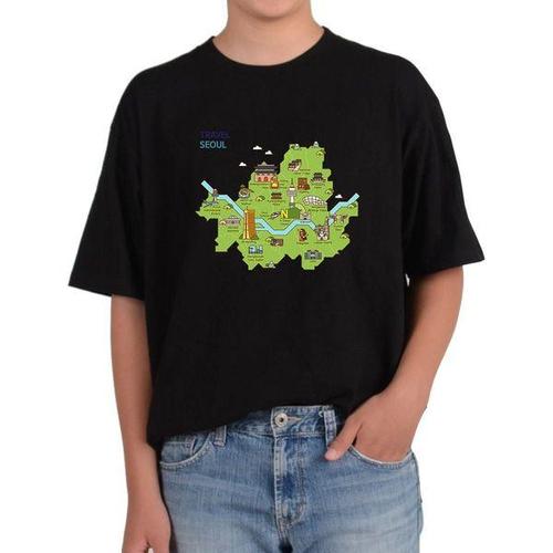 [에이치플러스몰]길단 반팔 USA핏 서울여행 서울지도 서울관광지 K문화 K뮤직그림 다양한색상 전사이즈