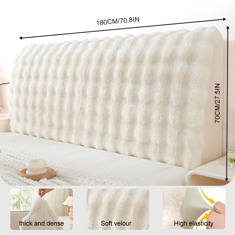 TEMU 1개 침대 헤드보드 두꺼운 커버 퀼트 헤드보드, 암호화된 두께의 플러시 보호커버, 초짧은 탄력 있는 플러시 침대 헤드 슬립커버 풀 사이즈 침대용 세탁 가능한 헤드보드 프로텍터 화이트