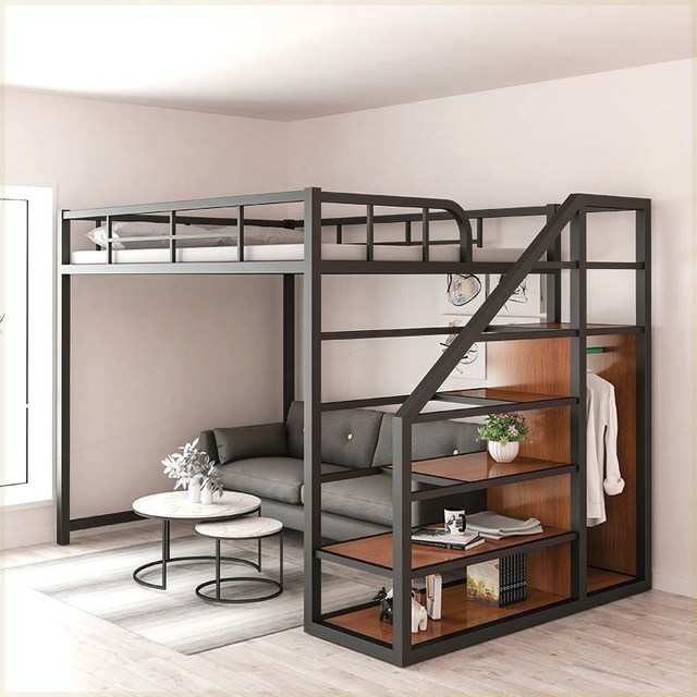 수납형 2층 침대 계단 포함 원룸 공간 활용 성인용 가구 사다리형 침실 벙커침대 프레임