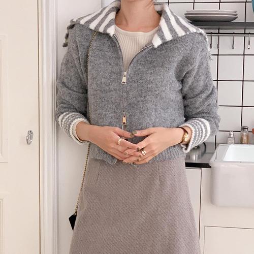 [옷자락] 여자 부클니트 단가라 세라카라 투웨이 집업 가디건