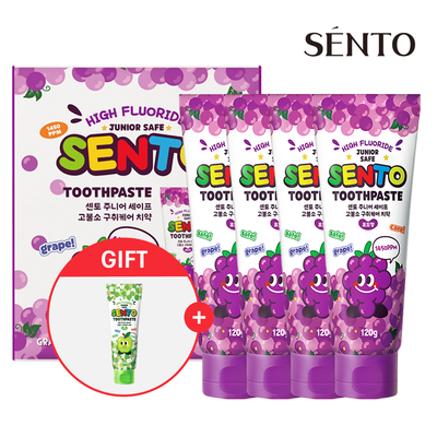 센토 주니어 세이프 고불소 구취케어 어린이치약 포도향, 120g, 4개