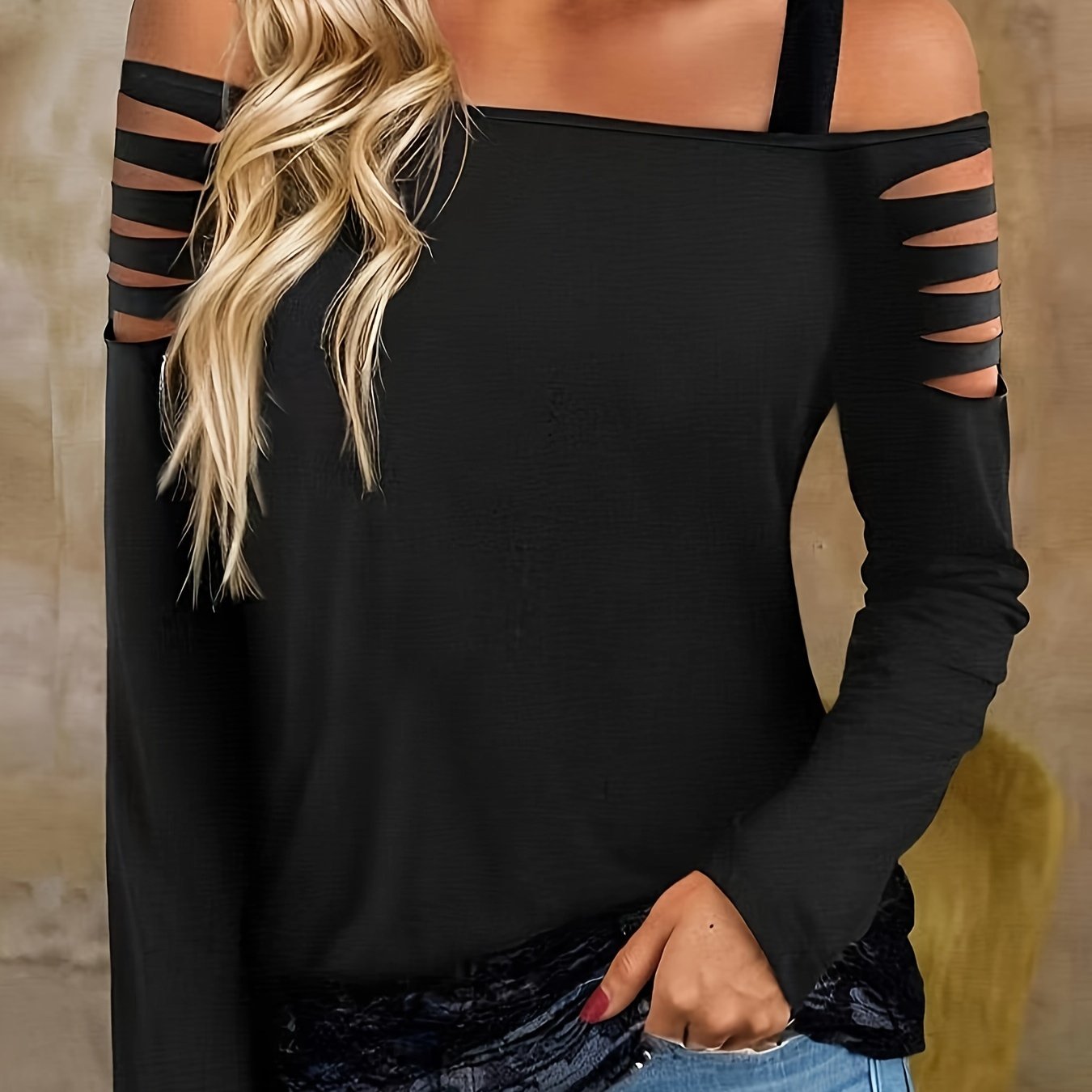 TEMU 여성 오프숄더 긴팔 티셔츠 - 슬림핏, 세로 , 봄/가을 캐주얼 시크 탑, 캐주얼 복장에 완벽, 봄 패션 탑 | 오프숄더 패션 | 스타일리시