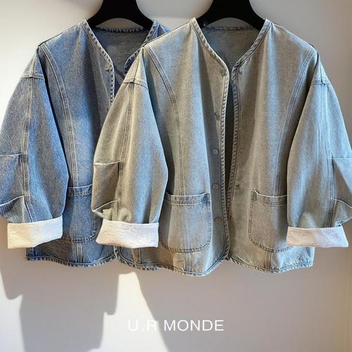 [유아몽드]퍼프소매 7부 청자켓 카라넥 여성 데님자켓 2color