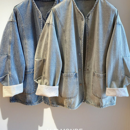 [유아몽드]데님자켓 루즈핏 청재킷 봄가을 여자 빅사이즈 배색