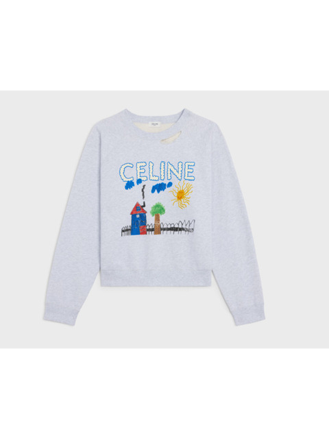 셀린느 코튼 플리스 루즈 스웨트셔츠 RY0SE1233 GGY6 PALE GREY
