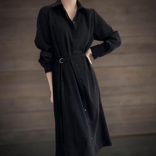 [신상오픈런]여성 가을 하객 출근용 벨트 셔츠 원피스 카라넥 긴기장