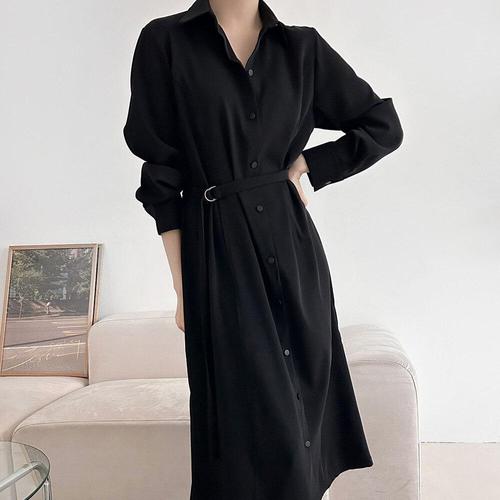 [옷자락]여성 가을 하객 출근용 벨트 셔츠 롱 원피스