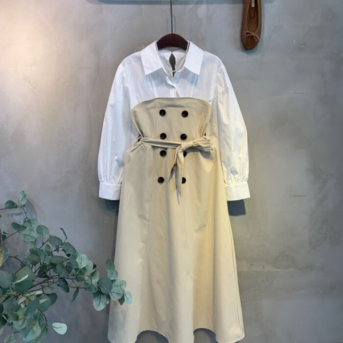 씨샵인더룸 / 베비 셔츠 레이어드 퍼프 벨트 트렌치 롱 원피스 2color