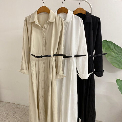 허니제이 / 벨트세트 브레온 핀턱 카라 셔츠 롱 원피스(3color)