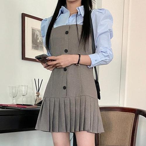 셔츠매칭 뷔스티에 원피스, 페이크 투피스 셔츠원피스 블라우스원피스 롱원피스 트렌치 원피스