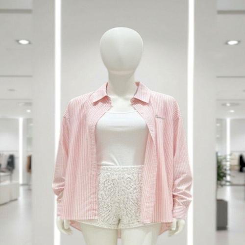 [비바앤코코넛]페미닌 레터링 브로치 스트라이프 루즈핏 셔츠 남방
