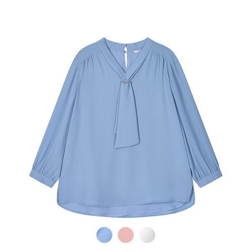 [BZFG94LN_51IB]고급 브로치 블라우스 여성 브이넥 티 셔츠