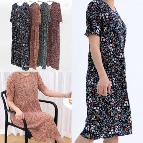 여자 여름 쿨 스판 냉장고 항아리 반팔 빅사이즈 원피스 40-50대 미시 중년여성 엄마옷 등원 홈웨어