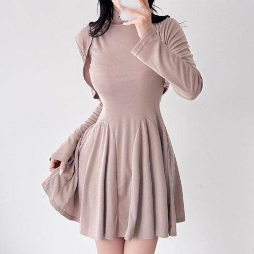 [다잇템][다잇템] 여자 하이넥 미니원피스 영패션 숏가디건 귀여운 세트_20121606_588872