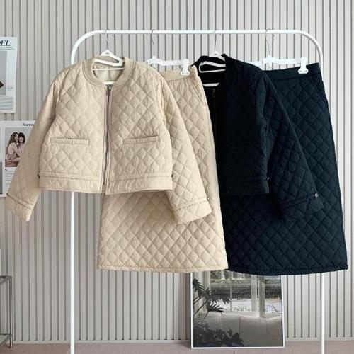 [신상오픈런]|CSD2305|퀼팅 숏자켓 패딩치마 방한룩 여성출근룩 솜자켓 세트_19601957_597559