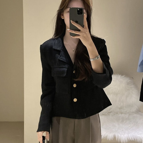 POMTOR 중년 여성 신상 외투 캐주얼 짧은 카라 상의