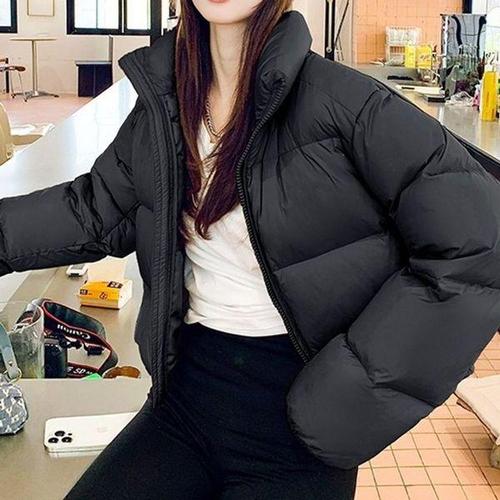 [에이치플러스몰]여성 기본 베이직 크롭 패딩 숏 점퍼 블랙