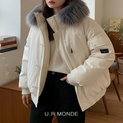 [유아몽드]U.R MONDE 여성 후드 퍼 트리밍 숏 패딩 점퍼 오버핏