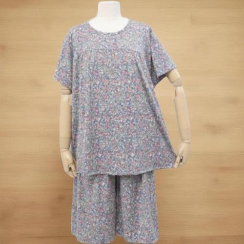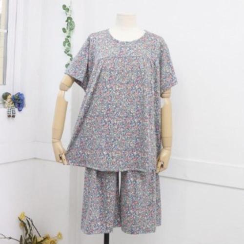[옷자락] 여성 플라워 패턴 루즈핏 면100 반팔 반바지 수면복 세트