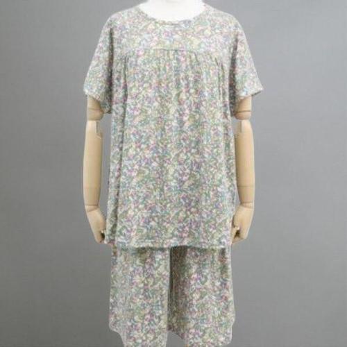 [미라클세븐]여성용 꽃 패턴 루즈핏 면100% 반팔 반바지 수면복 세트