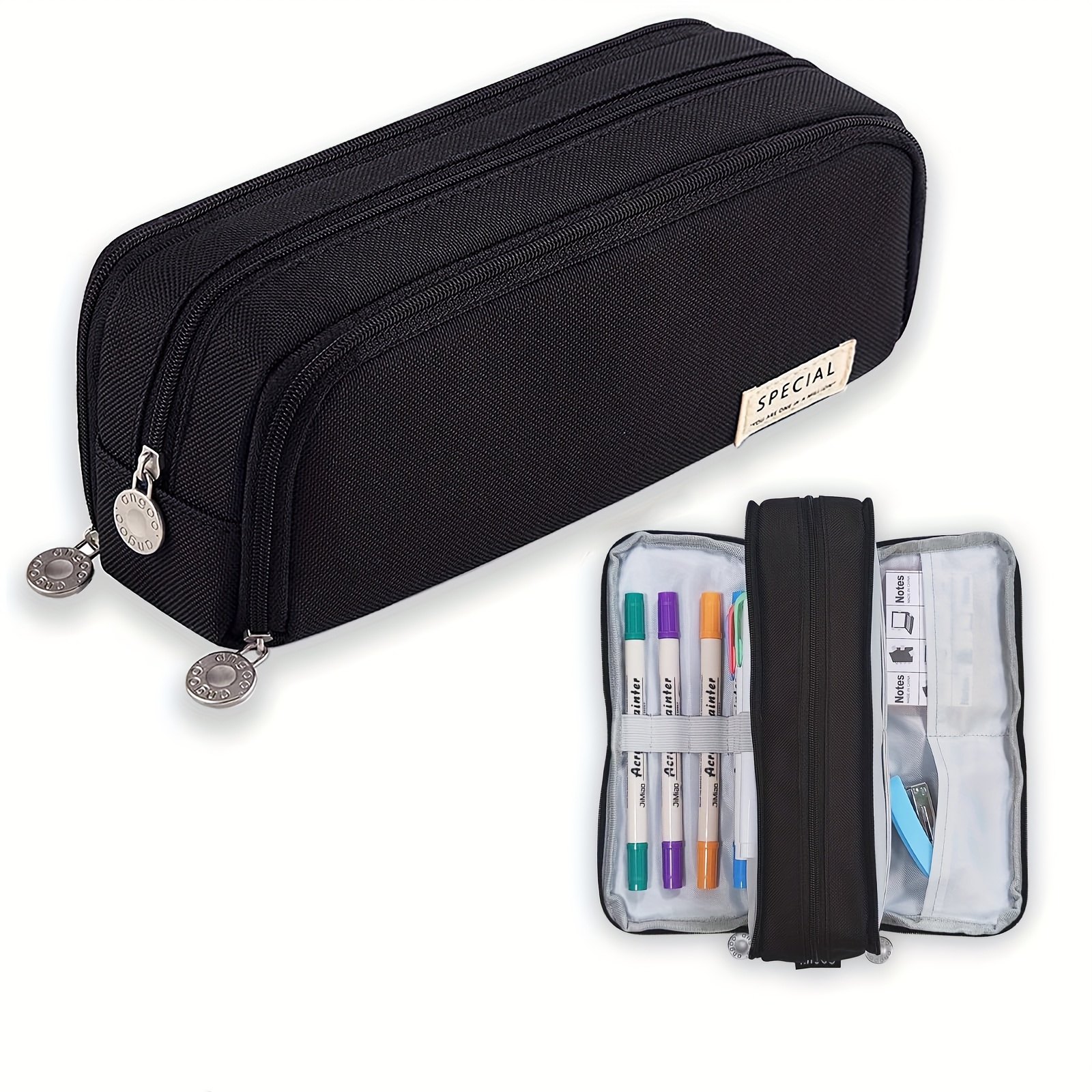 TEMU 일본 스타일 삼중 지퍼 필통 - 대용량 & 더블 오프닝 오피스 정리함, 펜, 마커, 노트북용 멀티컬러 구획 - 내구성 있는 일본 디자인 북형 문구함 (학생 선물용)