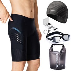 코스키 남성 5부 사각 수영복 6종세트 안개방지 코팅 수경 수모 귀마개 코마개 가방 HWS-BK512