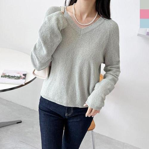 [에이치플러스몰]2LUND 5086 여자브이넥 부클니트티 순 여