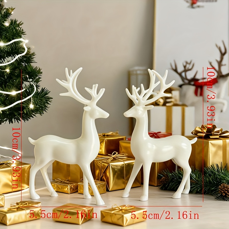 TEMU 매력적인 수제 흰색 사슴 조각상 세트, 홈 데코 및 휴일 축하 행사에 완벽, 축제 장식 | 판타지 테마 | 장식 조각상, 크리스마스에 이상적이고 추수감사절에 좋습니다.