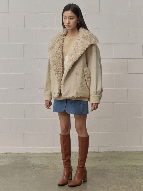 [로맨시크] 테디 쉐어링 더블 울 자켓 (베이지)