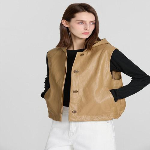 [쉬즈미스]SWWVTP12010/인조가죽 스트링 후드 베스트