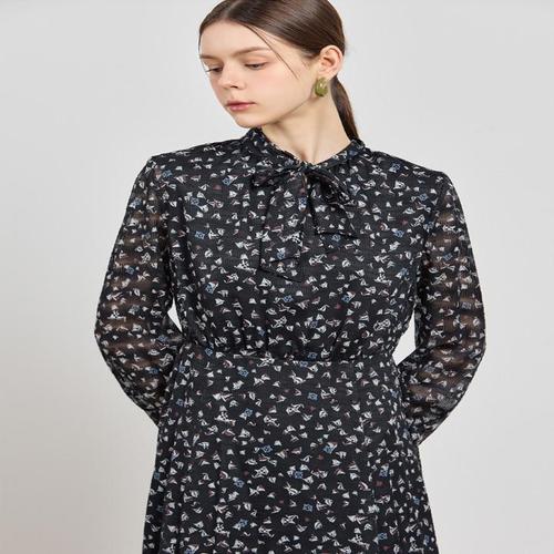 [쉬즈미스] 플로럴 백 리본 플레어 원피스_SWWOPO21100
